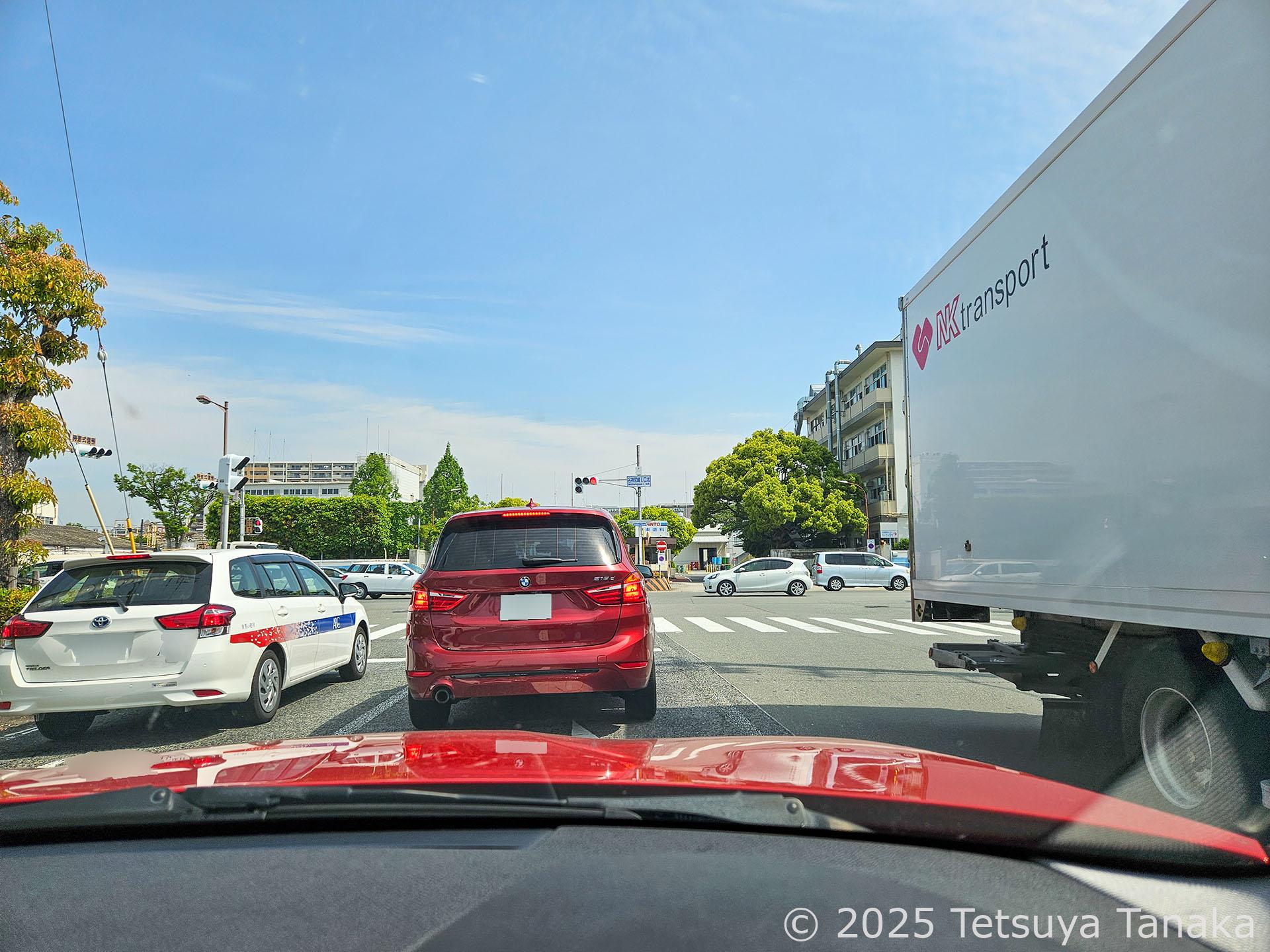 ここでも、曲がる交差点を写真と動画で撮影する。