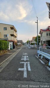 ある程度南に歩くと、これまた現役当時はなかった新興住宅地が左手にみえる。元は、テニスコートとグラウンド、駐輪場、留学生寮だったスペース。閉学より前に、既に売却されていた区画には、建設されてある程度長い年数が経った住宅がびっしり建っている。