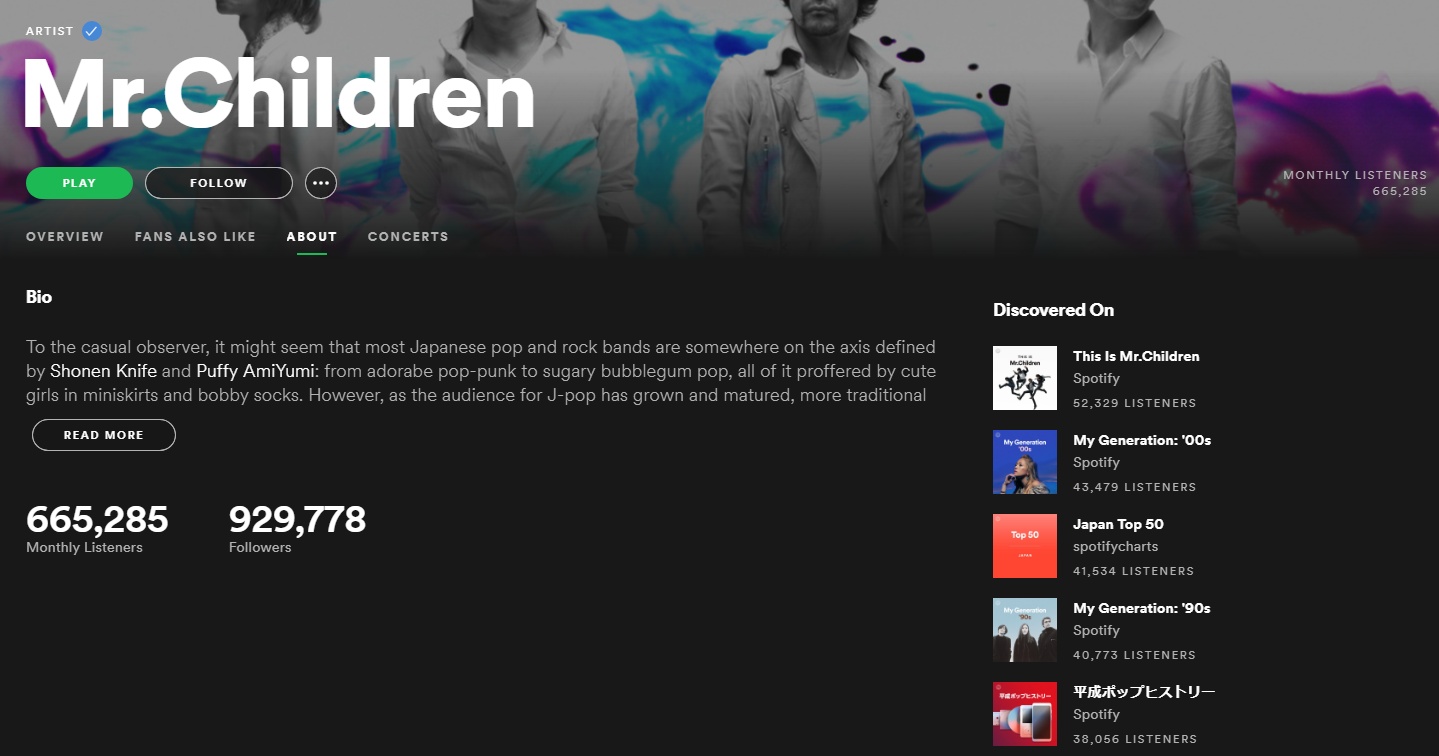 わかりやすい数字を見てみよう。これはSpotifyのある有名なアーティストのページ。